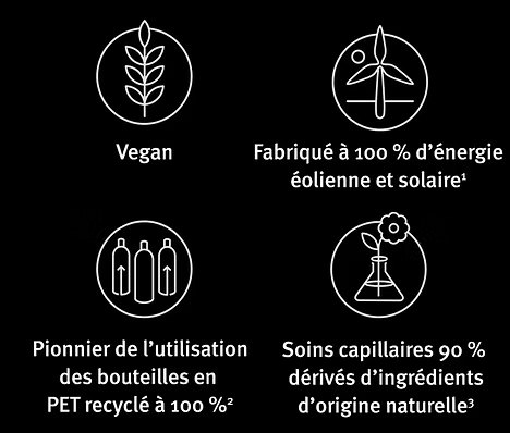 1 L’énergie destinée à la fabrication des produits Aveda est fournie par des panneaux solaires et/ou des éoliennes, par le biais de crédits et compensations carbone. Nous mettons en place les actions nécessaires pour obtenir la certification « Zero Waste to Landfill » de niveau Silver sur notre principal site de fabrication, en nous appuyant sur le plan de l’entreprise UL. 2 Plus de 85 % de nos bouteilles et pots de soins pour la peau et produits capillaires contiennent 100 % de plastique recyclé post-consommation. Aveda a été la première entreprise de beauté à utiliser 100 % de PET recyclé post-consommation pour ses emballages. 3 Les soins capillaires sont dérivés à 90 % en moyenne d’ingrédients d’origine naturelle d’après la norme ISO. À base de plantes, de minéraux d’origine non pétrolière ou d’eau.